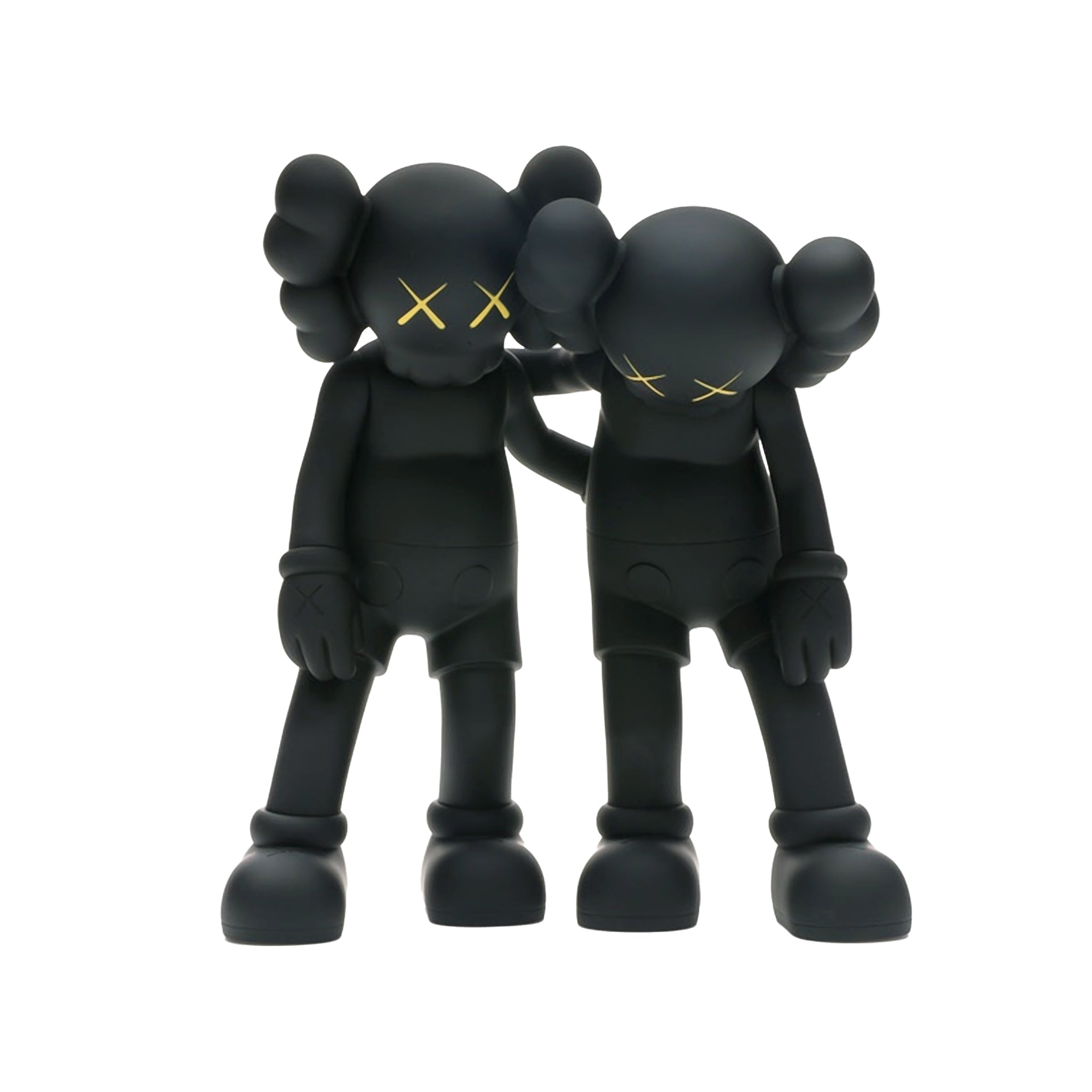 The KAWS Along The Way figurine is a rendition of the artist’s 2013 eighteen-foot wood sculpture originally exhibited at Mary Boone Gallery NY. Along The Way presents a unique pose for KAWS’ signature Companion characters. KAWS’ design features two of his iconic companions leaning on each other for emotional support, hands heavy and eyes cast downward.